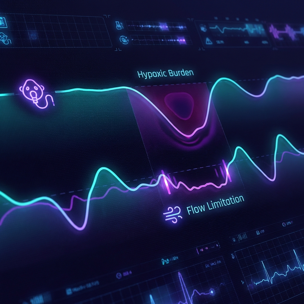We look beyond simple AHI. By utilizing up-to-date scoring guidelines, we measure 'Hypoxic Burden' and subtle flow limitations to capture the full impact of your sleep quality.